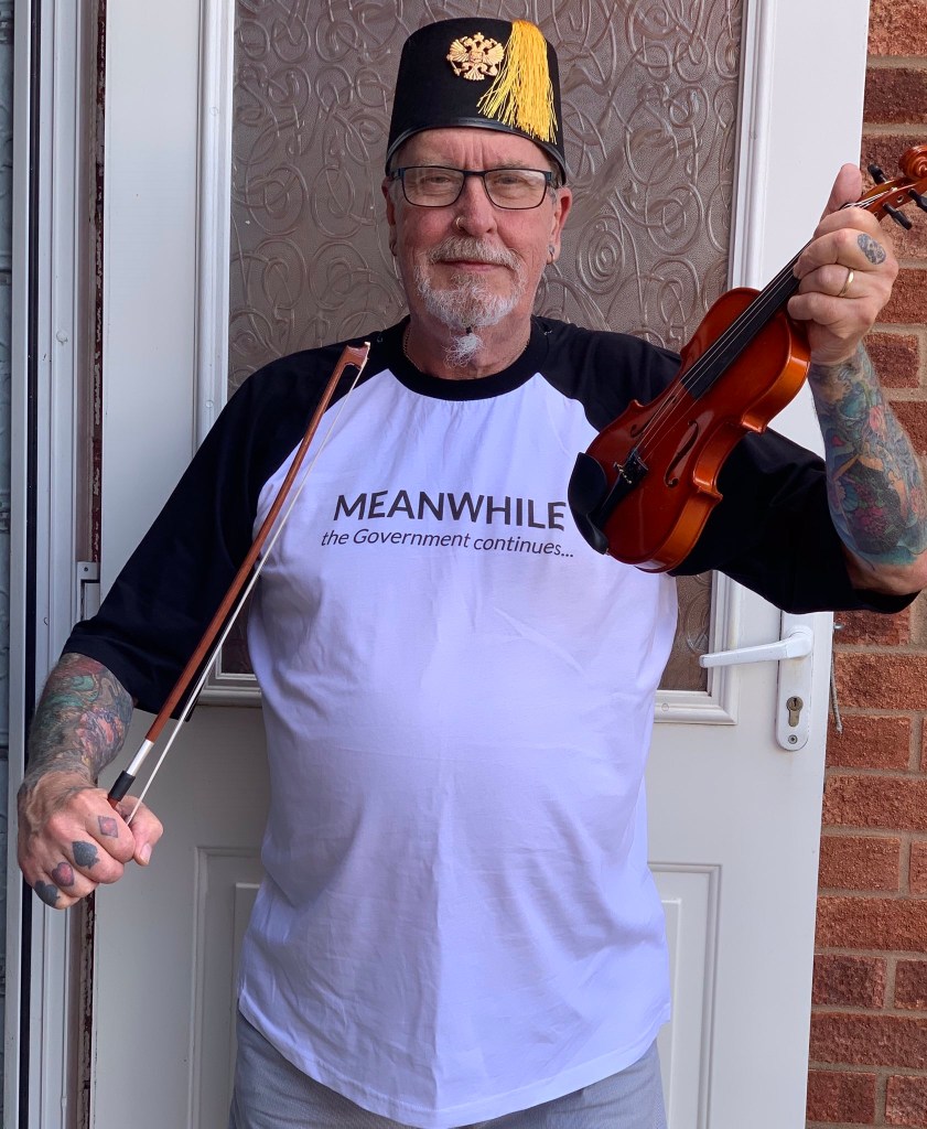 Why not buy one of our shirts? Here is Barmy Lord Brockman in a ‘Meanwhile, the Government continues’ shirt